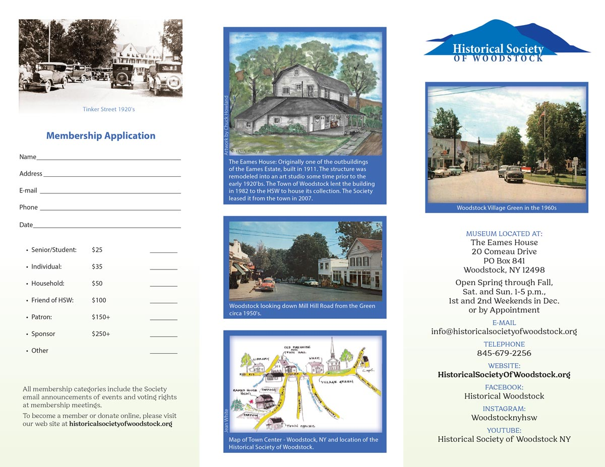 Become a Member Support Us By 2026 Membership (using PayPal or a credit card) HSW Membership - Choose Level Senior/Student $25.00 USD Individual $35.00 USD Household $50.00 USD Friend of HSW $100.00 USD Patron $150.00 USD Sponsor $250.00 USD Download the Membership Brochure 2026 Membership Levels Senior/Student $25 Individual $35 Household $50 Friend of HSW $100 Patron $150 Sponsor $250 DONATE towards the Modern Archive and Research Center Membership Letter of 2025 Historical Society of Woodstock - Bylaws