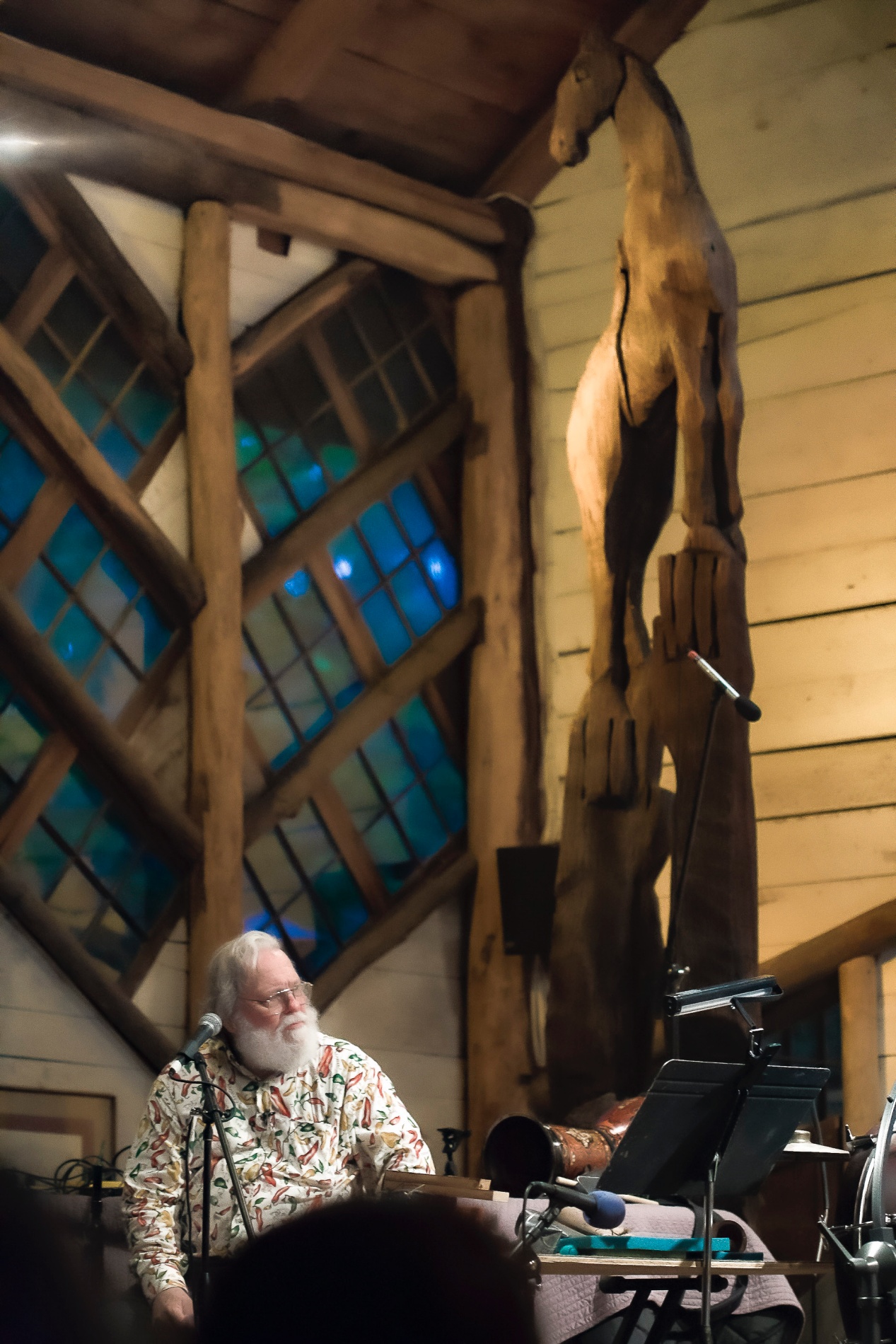 These are digital snapshots, not carefully staged studio portraits, “Records of unplanned encounters with friends, co-workers and casual acquaintances,” as Kleinhans puts it in the foreword of the exquisitely produced catalog entitled “Woodstock Personalities.” The expansive circle of Kleinhans’ friends and acquaintances know that he and his camera are virtually inseparable. His friends are used to him moving around or making a quick suggestion before snapping one or several shots. The result can be an extraordinary display of the social intimacy among old friends – creative Woodstock at its best.