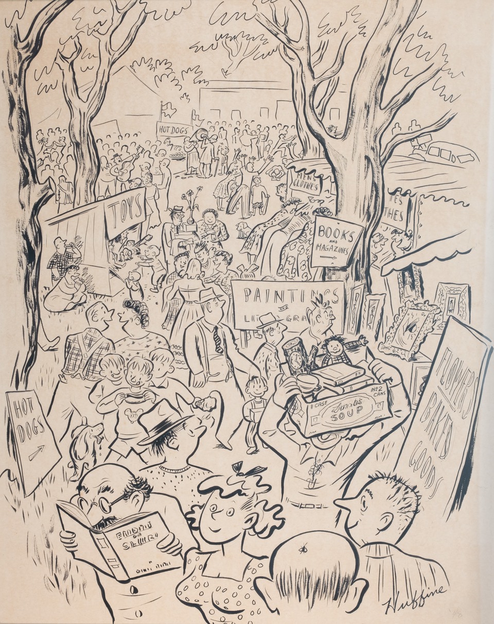 The exhibition, curated by Bruce Weber with the assistance of Maria Yeye, highlights three areas of the fine art collection: portraits of leading local individuals; townscapes, village scenes, landscapes; and the sociey’small but exquisite collection of still life. Among the works on view are self-portraits by Kurt Sluizer, Manuel Bromberg, Franklin Alexander, Leslie Bender, Robert Angeloch, Sally Michel Avery, March Avery and Dan Gelfand, as well as likenesses by Judson Smith of artist Sam Wylie and illustrator Miska Petersham, and Aline Fruhauf’s caricature of the author J. P. McEvoy. Outdoor scenes by Clarence Bolton, Reeves Brace, Wilna Hervey, Doris Lee and Mary James, and still lifes by Ernest Fiene, Harry Gottlieb, Georgina Klitgaard, Mary D. Smith, and Milton Glaser are also included.